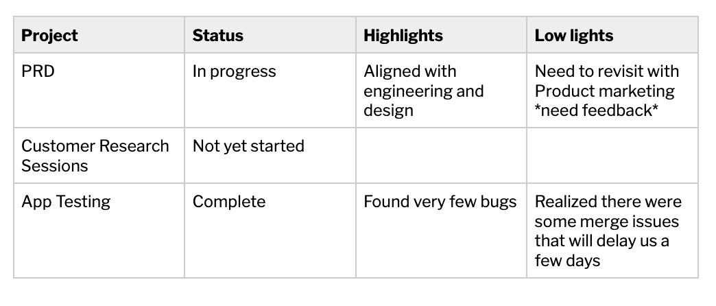 I wish someone had laid this out for me earlier in my career. I spent too much time rambling through status updates. But hey, we live and we learn.