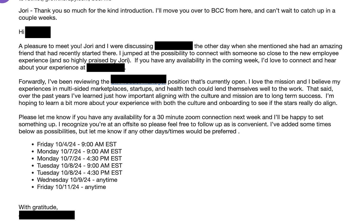 I make a lot of intros on a daily basis. It's one of the reasons Product Leaders choose to work with me (my network is theirs, #wearefamily)